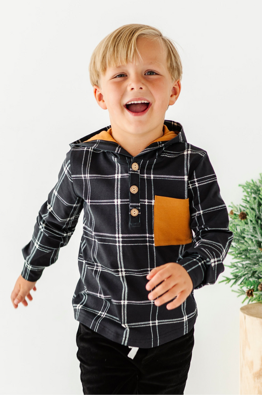 Black Plaid Hooded Henley