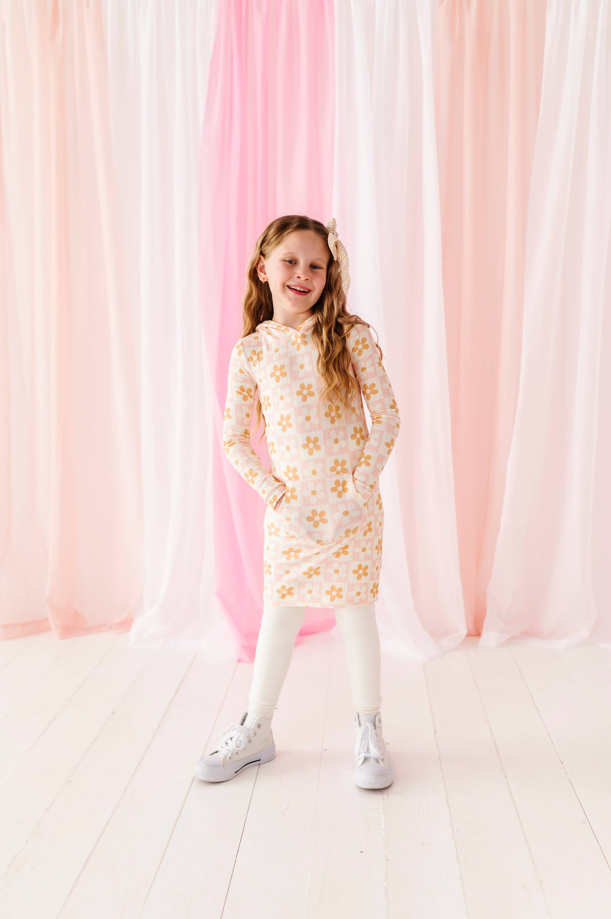 Daisies Ribbed Hoodie Dress