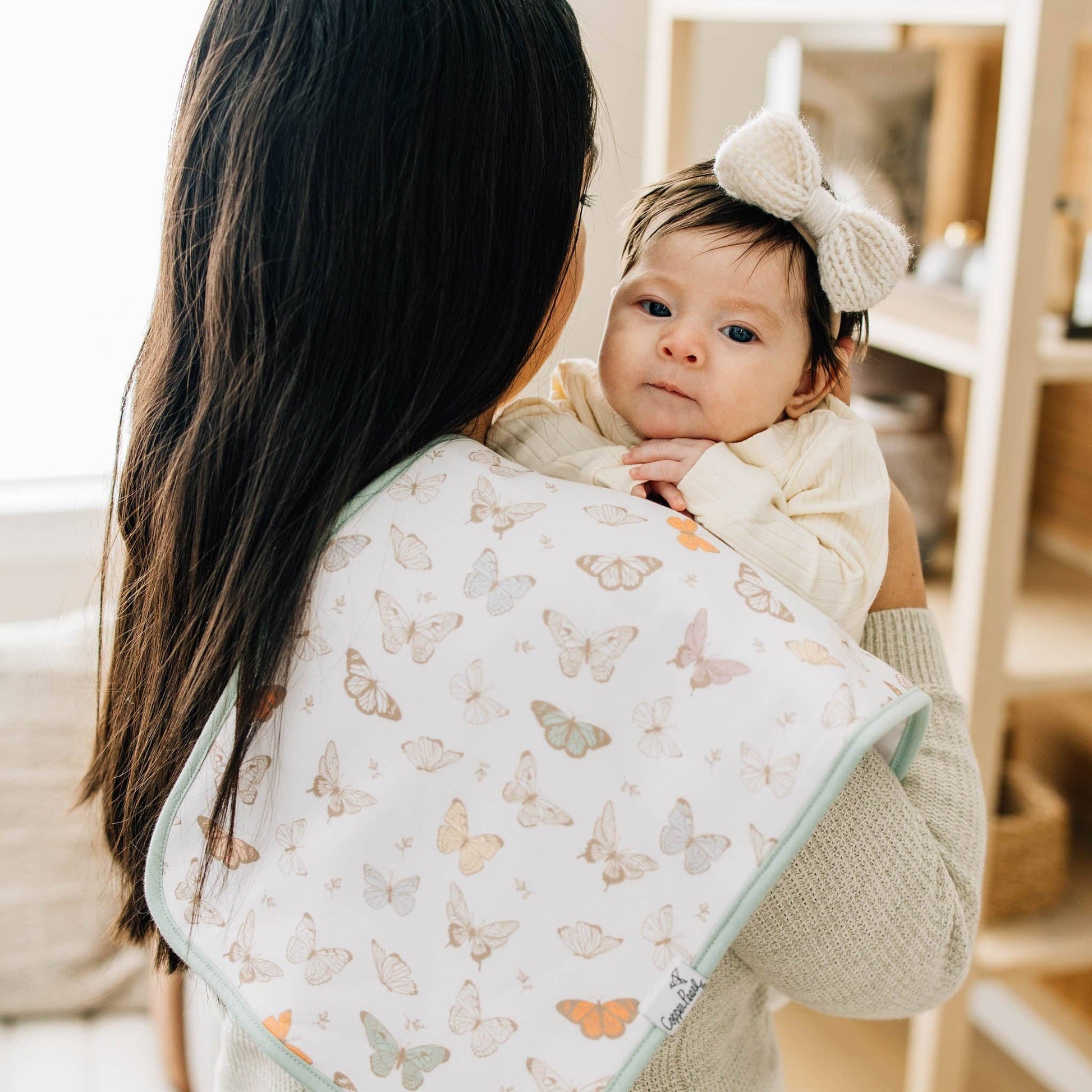 * At Copper Pearl we pride ourselves on making high quality products that always look great on babies, moms, or in your nursery. Our burp cloths are simple, modern, and sure to elevate any baby's style.